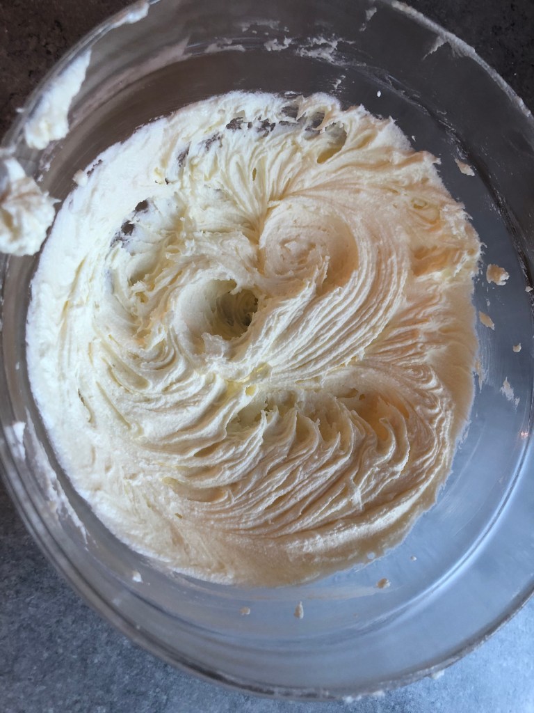 - Add salted butter and unsalted butter/shortening to a large bowl and beat until combined and smooth.