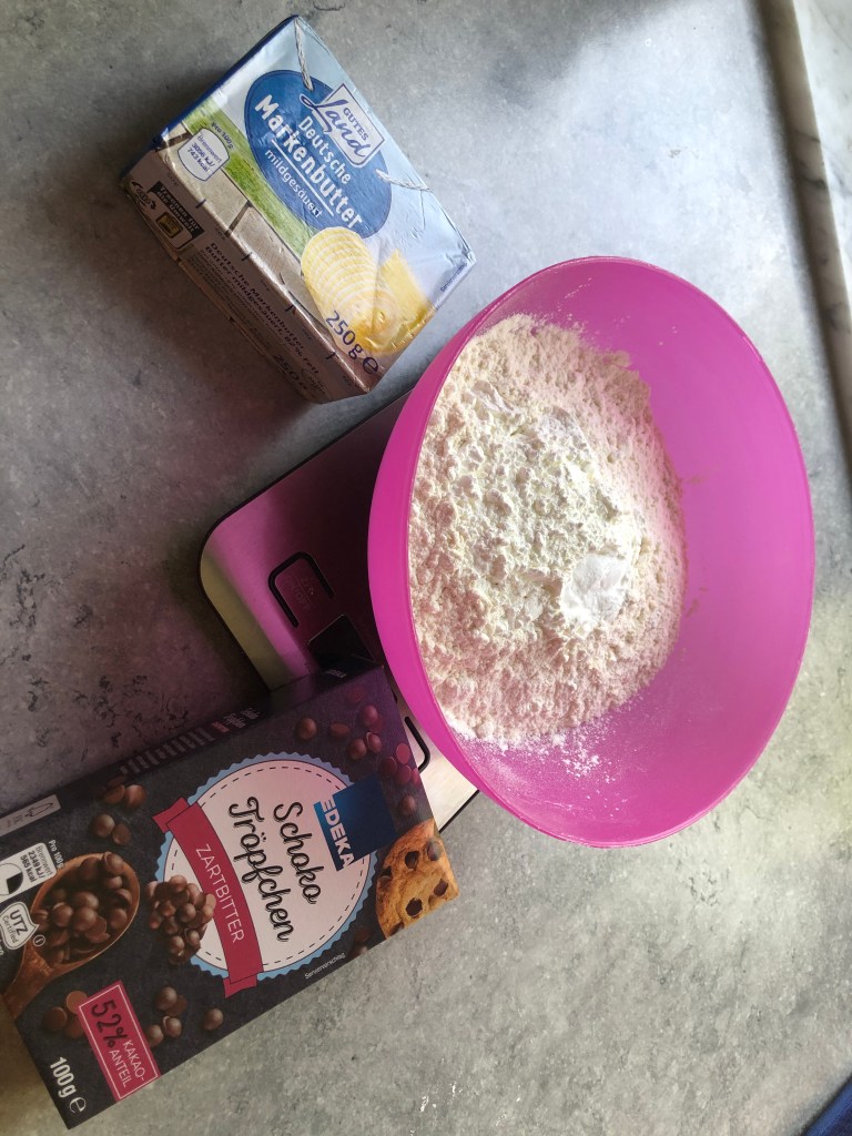 - Add maida mixture and choco-chips to the butter-sugar mixture and mix lightly with your fingertips.