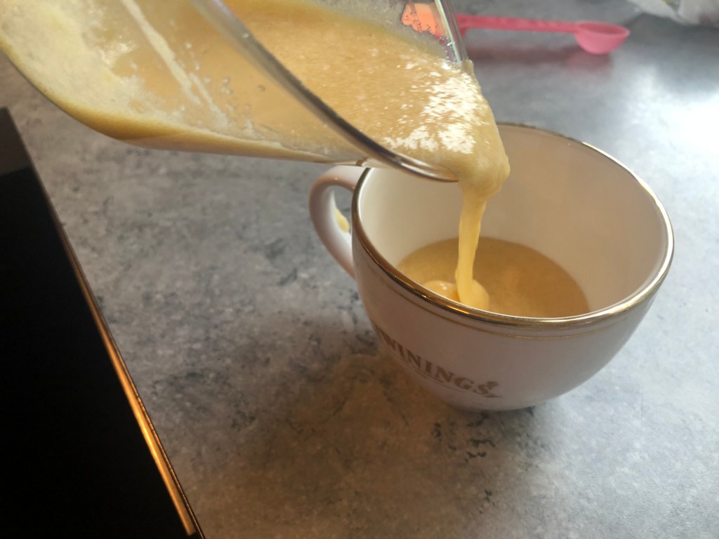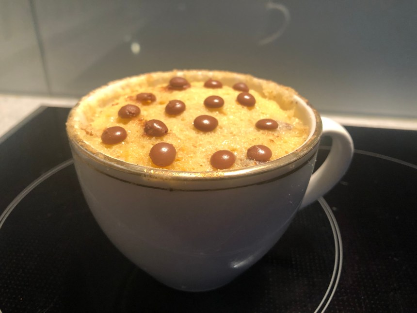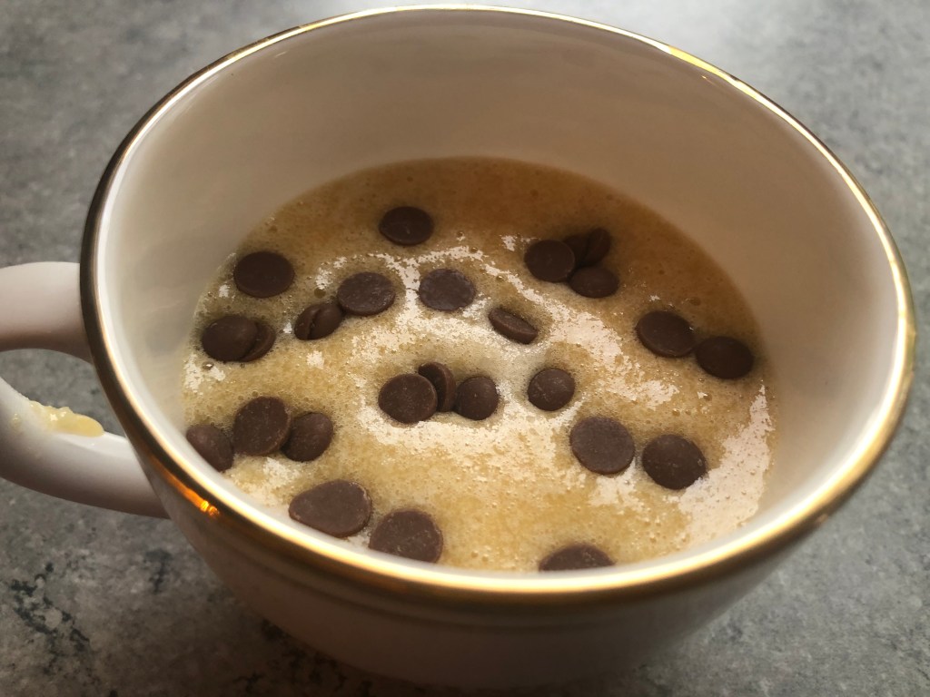 - Pour the batter in the cup and microwave for 1 or 1.5 minutes.